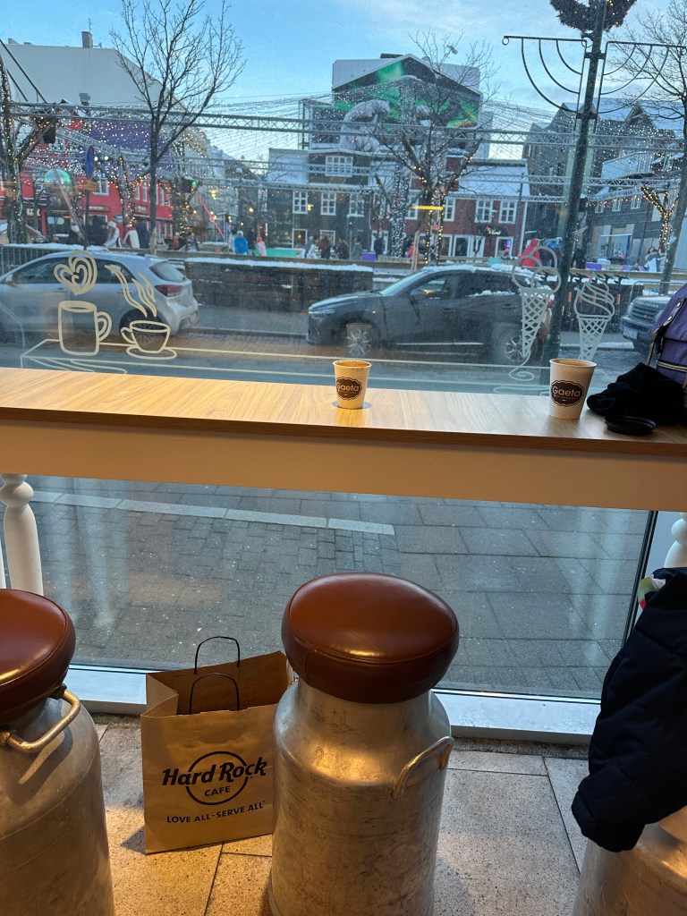 After lunch, we explored the city and its stunning landmarks, including the beautiful Harpa Concert Hall, the Sun Voyager Statue, and the Hallgrimskirkja. We also indulged in some hot chocolate and ice skating at Ingolfstorg Square, which was a delightful afternoon of taking in the city’s feel and architecture.