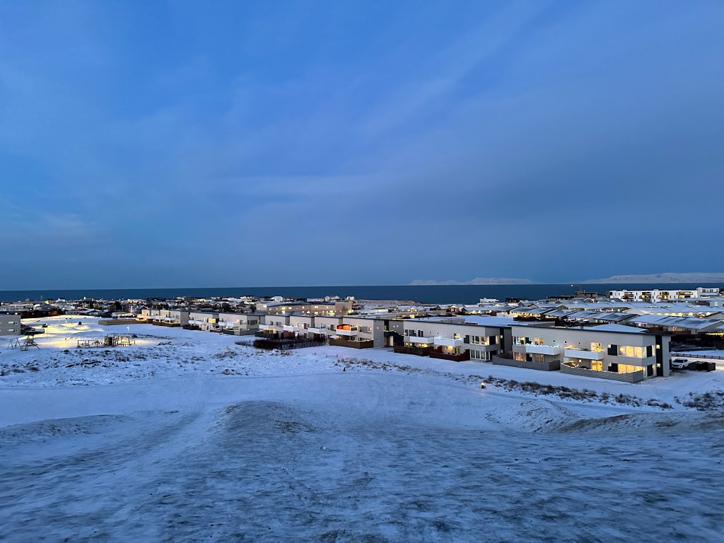 On our way to the airport, we stopped at Kambur at Njarðvík, where we walked around the hill, took some stunning photos and even went sledging after spotting some local children doing the same.